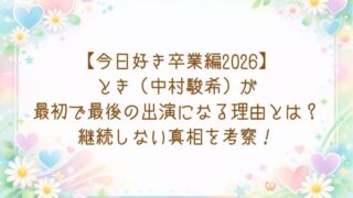 今回の記事では、今日好き卒業編2026の撮影日やロケ地・場所を中心に、番組の見どころをまとめてきました。
